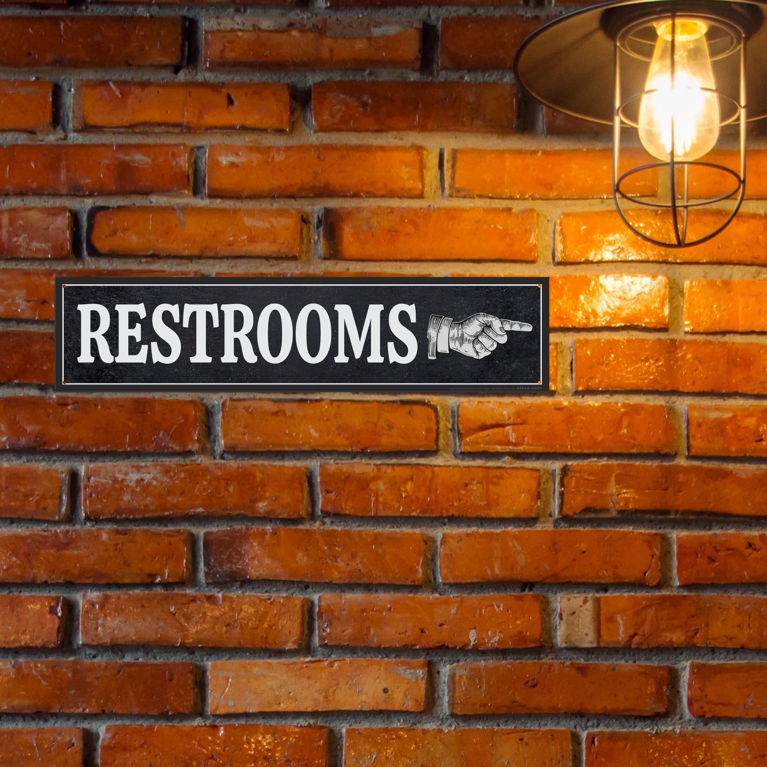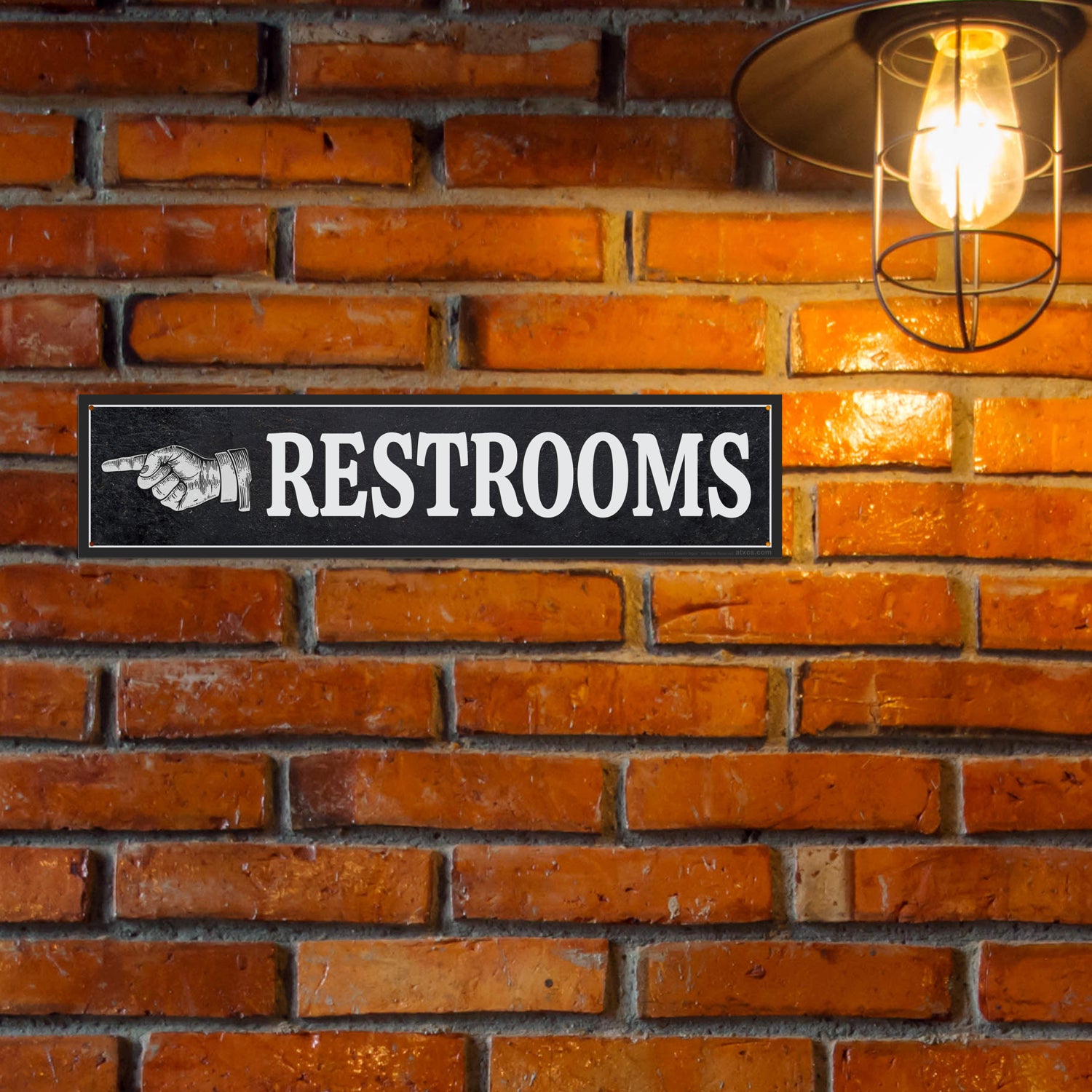 ATX CUSTOM SIGNS - Dark Rustic Restroom Hand Pointing Signs - Double Sided Left or Right Pointing 2 Signs Pack